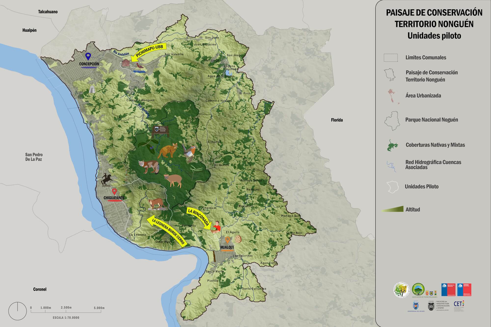Parte del trabajo del Paisaje de Conservación Territorio Nonguén (PCTN) es promover la conciencia ambiental, la educación, la investigación y la adopción de prácticas sustentables. Para ello se ha propuesto el diseño de 3 unidades pilotos demostrativos paro la restauración y conservación de! PCTN.
